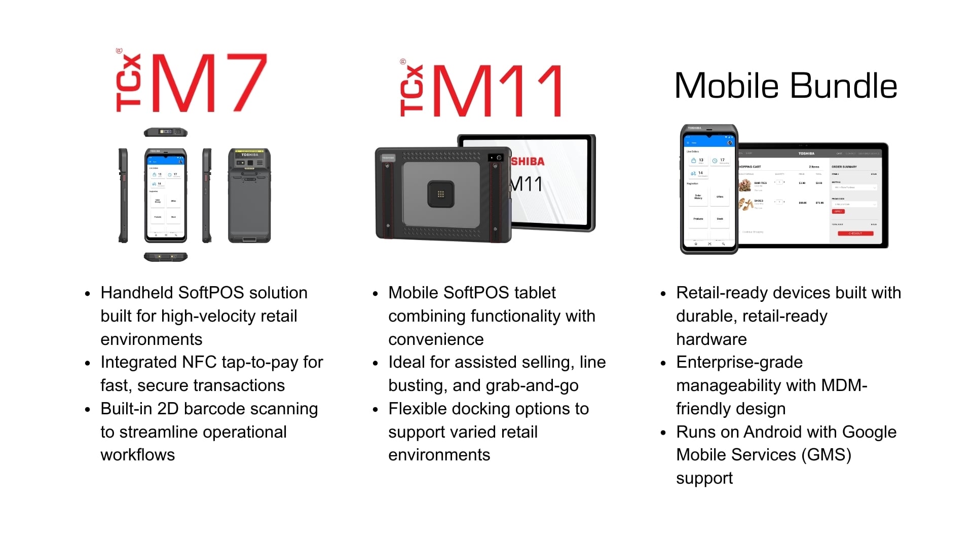 Meet customers where they are and streamline store operations with the TCx® M7 handheld and TCx® M11 tablet. One mobile ecosystem built for modern retail and hospitality.